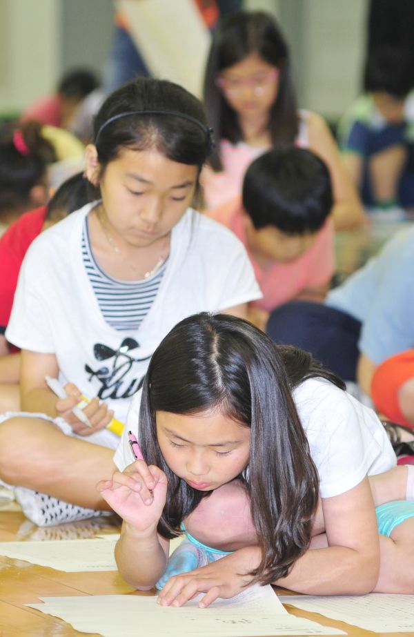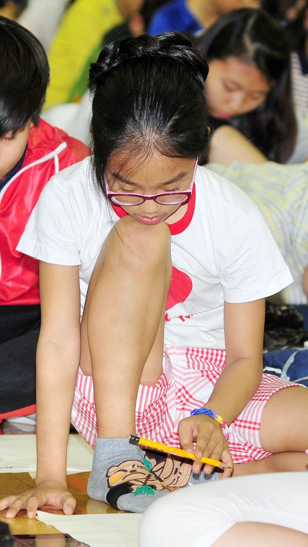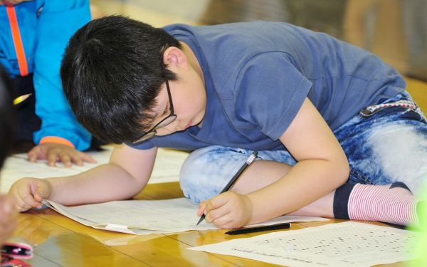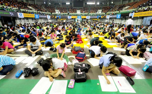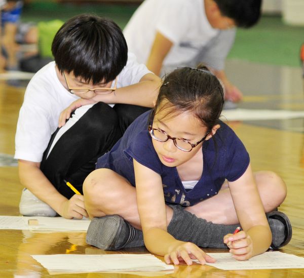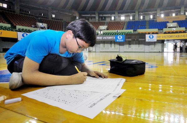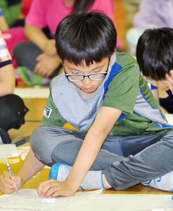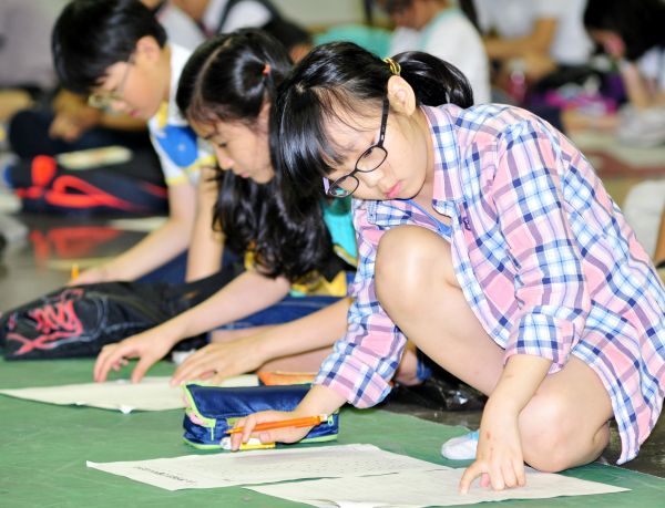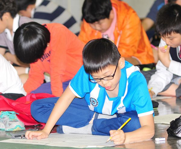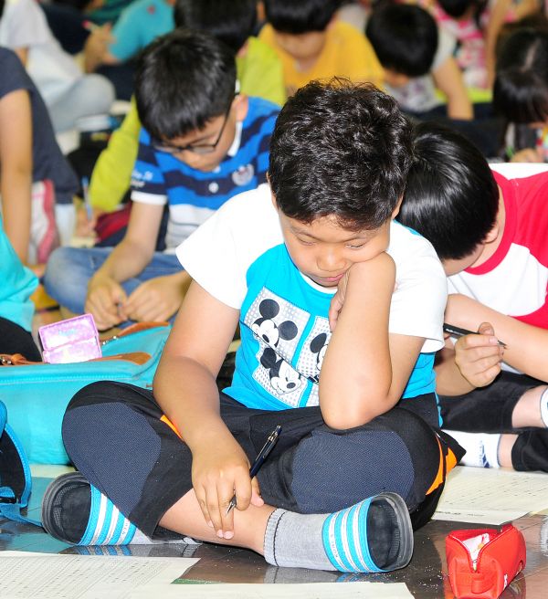 청주 남성초 이동헌군이 80분간의 시험시간이 종료될 때까지 최선을 다해 문제를 풀고 있다.