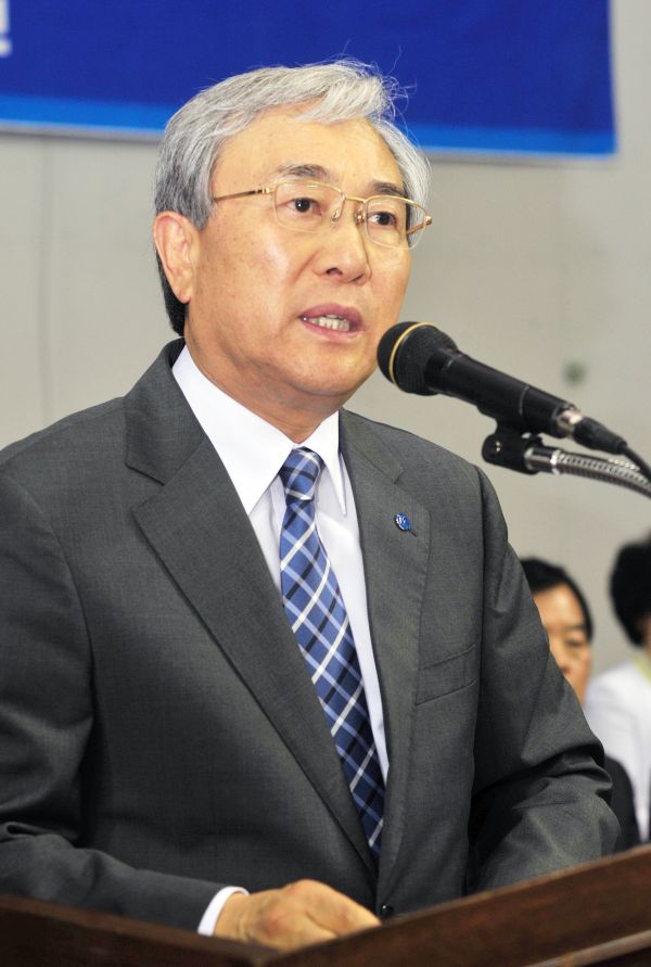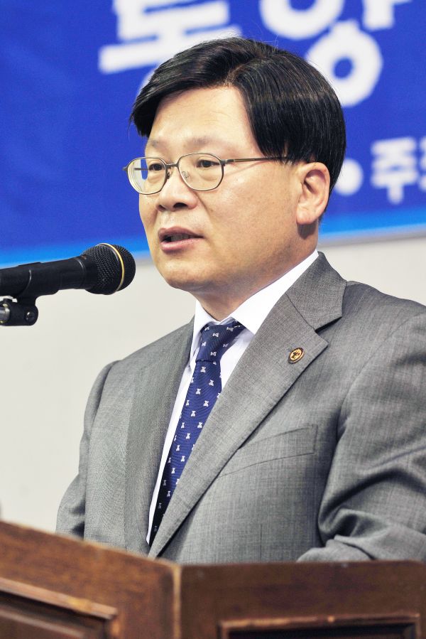 조철호(왼쪽) 동양일보 회장이 대회사를, 김대성 충북도교육청 부교육감이 축사를 하고 있다.