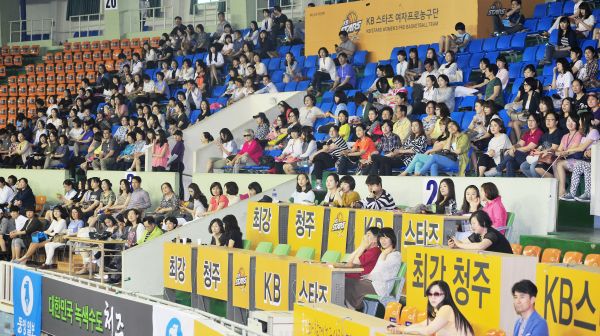 청주지역에서 참가한 각 학교 교사와 학부모들이 학생들을 응원하고 있다.