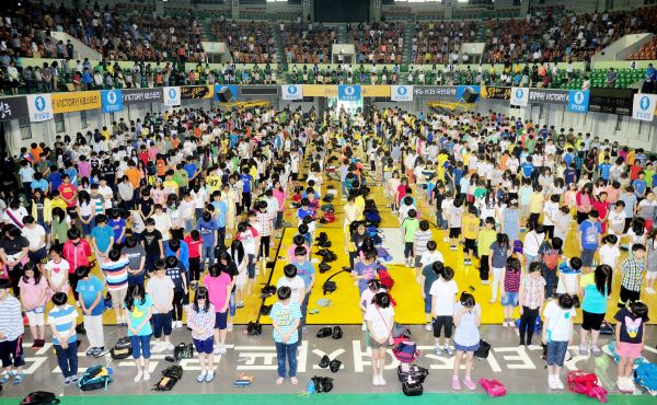 22회 동양일보 만물박사 선발대회 개회식에서 참가 학생들이