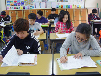 창의적 체험활동 시간을 활용, 한자 공부를 하고 있다. 각자 급수에 맞도록 하고 있으며, 인성교육 차원에서 사자성어 공부도 같이 한다.