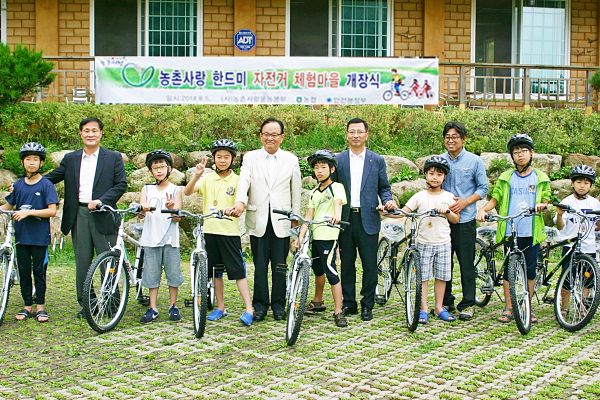 충북농협(본부장 임형수)과 (사)농촌사랑범국민운동본부(상임대표 최원병 농협중앙회장)는 5일 팜스테이 마을인 단양 한드미마을에서 ‘농촌사랑 자전거 체험마을 개장식’을 가졌다.