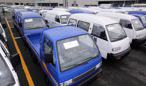 27일 경남 창원시 한국GM 창원공장에서 열린 '다마스·라보 생산재개 기념 한국GM의 날 선포식'에서 고객에게 전달을 앞둔 다마스·라보가 출고장에서 대기하고 있다.