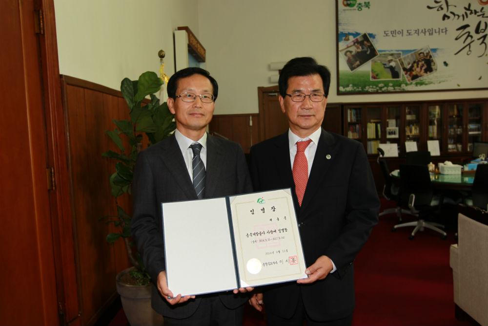충북개발공사 사장에 계용준(사진 왼쪽)씨가 임명됐다.