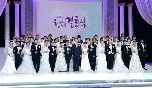 (동양일보) KBS가 다문화, 북한이탈주민 부부를 위해 진행해온 무료 합동결혼식 '행복한 결혼식'의 6번째 행사가 9일 오후 서울 여의도 KBS홀에서 진행됐다.