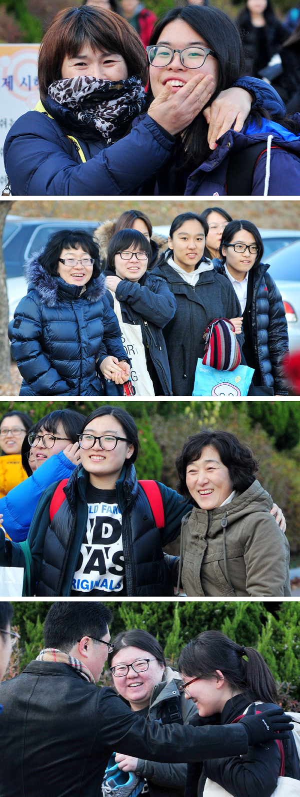 ▲ 2015학년도 대학수학능력시험이 13일 전국 85개 시험지구 1216개 시험장에서 일제히 실시됐다. 이날 가족들의 격려와 선·후배들의 열띤 응원 속에 무사히 시험을 마친 수험생들이 밝은 표정으로 시험장을 나서고 있다.<사진/임동빈>
