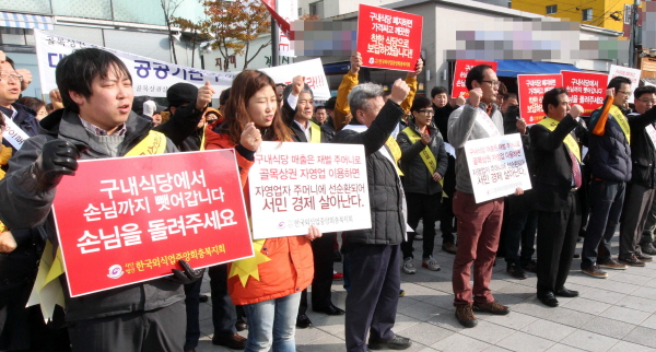 식품위생법상 공공기관, 기숙사, 학교, 병원 등의 급식시설인 ‘집단급식소(구내식당)’는 영리를 목적으로 운영하면 안 된다는 점을 강조한 이들은 “관공서 구내식당들이 민간식당을 고사시키는 행위를 즉각 중단해야 한다”고 촉구했다.