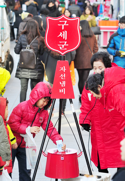 ▲ 구세군 충북지방본영은 6일 청주 성안길에서 '2014 자선냄비 시종식'을 갖고 연말 어려운 이웃을 돕기 위한 본격적인 모금활동에 들어갔다. 충북도내 25곳에서 오는 31일까지 진행되는 이번 모금활동의 목표액은 1억8000만원이다.<사진/임동빈>