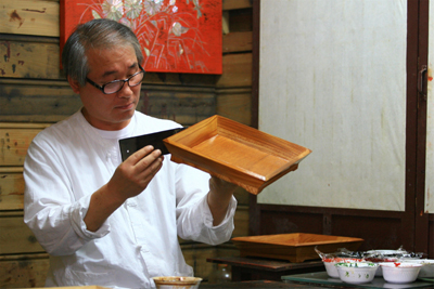 김 명장은 이곳에서 한옥마을 전체 건물을 옻칠로 마감하는 일의 총 연출을 맡고 있다.