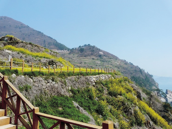 아래로는 아찔한 기암괴석으로 절벽이 뻗어있고, 옆으로는 다랑이 논이 눈부시다. 멀리 구불구불한 해안을 따라 이어진 작은 해변과 한려수도 청정해역의 푸른 바다까지 시원한 걸음걸음을 느낄 수 있다.