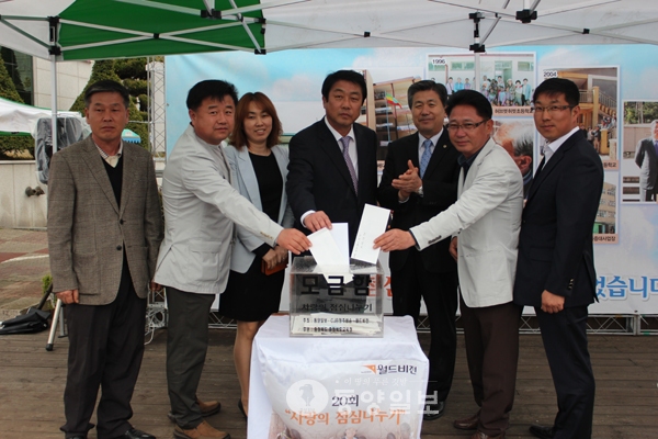 20회 사랑의 점심나누기 순회 모금행사가 13일 오후 2시 진천읍사무소 광장에서 열렸다.