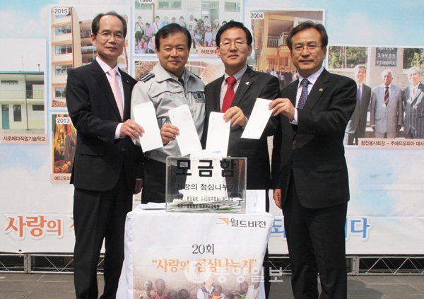 20회 사랑의 점심나누기 순회 모금행사가 15일 오후 2시 제천시민회관 광장에서 열렸다.