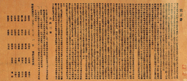 吾等(오등)은 玆(자)에 我(아) 朝鮮(조선)의 獨立國(독립국)임과 朝鮮人(조선인)의 自主民(자주민)임을 宣言(선언)하노라. 此(차)로써 世界萬邦(세계만방)에 告(고)하야 人類平等(인류평등)의 大義(대의)를 克明(극명)하며, 此(차)로써 子孫萬代(자손만대)에 誥(고)하야 民族自存(민족자존)의 正權(정권)을 永有(영유)케 하노라.<매주 월요일 연재>