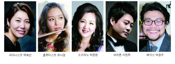 1부에는 피아니스트 백혜선과 플루티스트 최나경씨가 연주하고 2부에는 소프라노 박정원과 바리톤 서정학, 베이스 박광우씨가 노래한다.