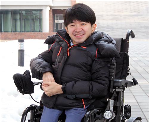 (천안=동양일보 최재기 기자) 골형성부전증이라는 희소병으로 전동휠체어 없이는 외출을 할수 없는 장애인이 33살에 학사모를 썼다.