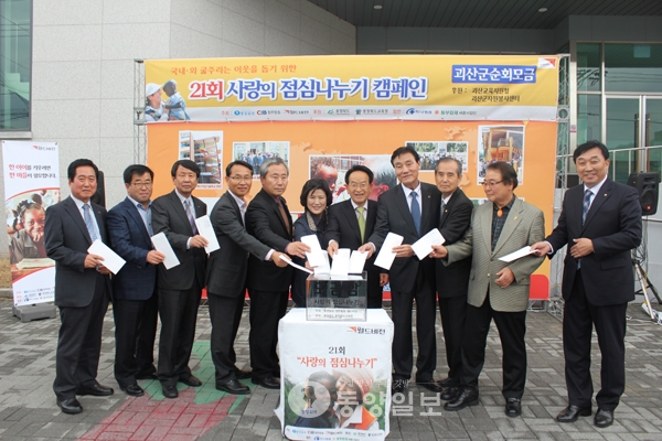 동양일보와 CJB 청주방송, 월드비전 충북본부가 공동으로 주최한 21회 ‘사랑의 점심 나누기 순회 모금 캠페인’이 이날 괴산군 문화예술회관에서 열렸다.