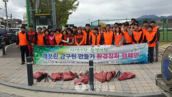 (옥천=동양일보 김묘순 기자)옥천환경사랑모임(회장 김영미)은 11일 오전 옥천읍 시가지와 금구천 일원에서 충북도립대학 환경생명과학과 교수와 학생들, 군청 공무원 등 60여 명이 참여한 가운데 쓰레기를 수거하고, 쓰레기 무단투기 금지, 쓰레기 줄이기 캠페인도 실시했다.