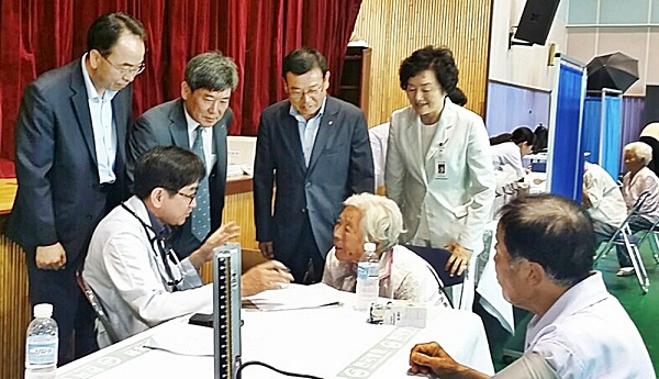 올해 두 번째로 열린 이번 농업인행복버스사업은 청주한국병원 의료진 30여명이 참여한 가운데 병원에 직접 찾아가기 어려운 500여명의 농촌 노인과 취약가정을 대상으로 내과, 외과, 정형외과, 치과, 가정의학과, 안과 등의 진료와 처방 등 종합의료봉사를 실시했다.