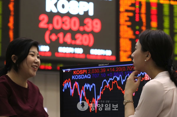 (동양일보)증권·파생상품 시장과 금 시장의 정규장 거래 시간이 30분씩 연장된 1일 오전 코스피 지수가 상승세로 출발하고 있다. 서울 영등포구 여의도 한국거래소 홍보관에서 직원들이 시황 모니터를 보며 이야기를 하고 있다.
