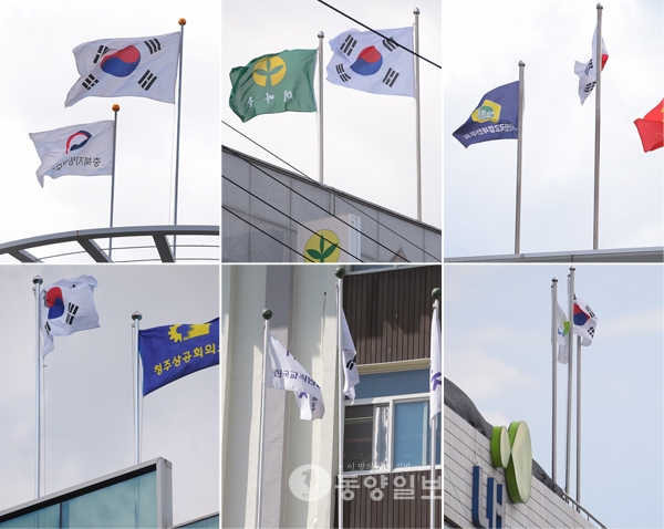 ▲ 106년전 한일병합조약이 강제로 체결돼 나라 잃은 날로 기록된 '경술국치일'인 29일 아픈 역사를 잊지 않기 위해 조기게양을 해야 하지만 충북일부 관공서와 기업, 단체기관에서 조기게양을 하지 않고 있다. <사진·최지현>