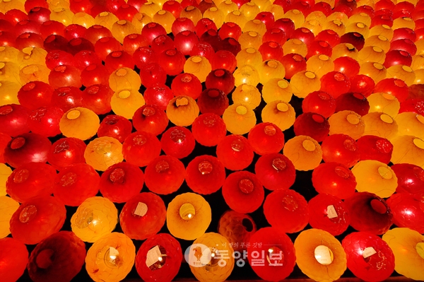 ▲ 전통문화계승발전연구회에서 주최하고 청주시불교연합회에서 후원하는 2016 무심천 직지유등문화제가 지난 3일 오후 무심천 체육공원에서 봉행됐다. 이날 유등문화제에 참석한 시민들이 소원을 담아 띄운 유등이 한곳에 모여 장관을 이루고 있다. <사진·최지현>