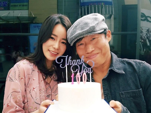'럭키'의 유해진(오른쪽)·임지연(왼쪽) 100만 관객 돌파 인증샷 [쇼박스 제공]