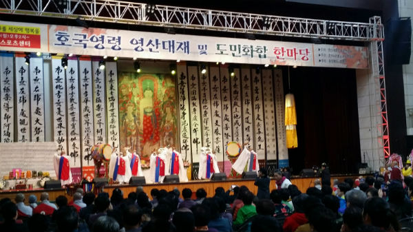 (증평= 동양일보 한종수 기자) 충북도민의 화합과 안녕을 기원하는 ‘2016 영산대재’가 지난 6일 증평종합스포츠센터에서 열렸다.