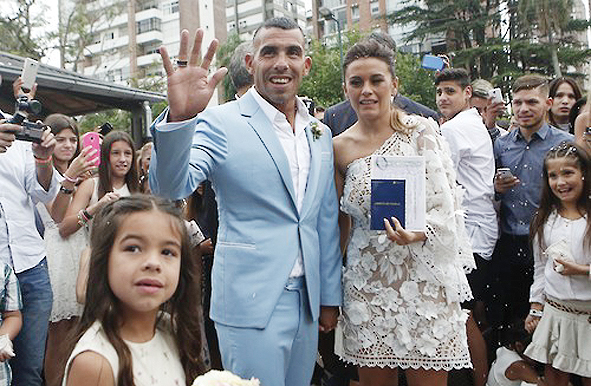 테베스는 지난 22일 부에노스아이레스에서 혼인 신고를 마친 뒤 우루과이 카르멜로의 교회에서 결혼식을 치렀다.