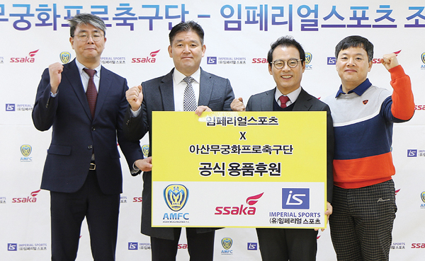(아산=동양일보 서경석 기자) 아산무궁화프로축구단은 17일 스포츠 용품전문 유통 기업인 유한회사 임페리얼스포츠(이하 임페리얼스포츠)와 용품 후원 협약을 맺었다.