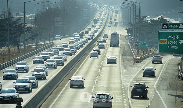 설 연휴 마지막 날인 30일 중부고속도로 서청주IC 부근에 고향으로 향하는 귀경차량들이 늘면서 정체현상을 보이고 있다. 한국도로공사는 전국 고속도로 정체는 오후 8시 이전에 해소됐다고 전했다. <사진·최지현