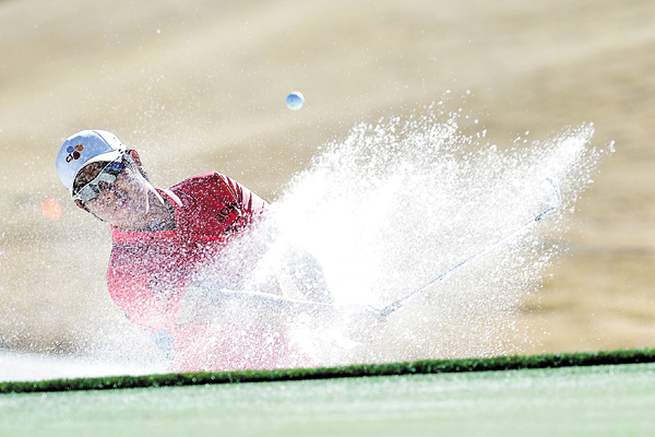 안병훈이 5일(한국시간) 미국 애리조나주 스코츠데일의 TPC스코츠데일(파71)에서 열린 PGA투어 웨이스트 매니지먼트 피닉스 오픈 3라운드에서 벙커샷을 하고 있다. 보기 없이 버디 6개를 기록하며 65타로 3라운드를 마친 안병훈은 중간합계 16언더파 197타로 단독 선두에 올랐다.