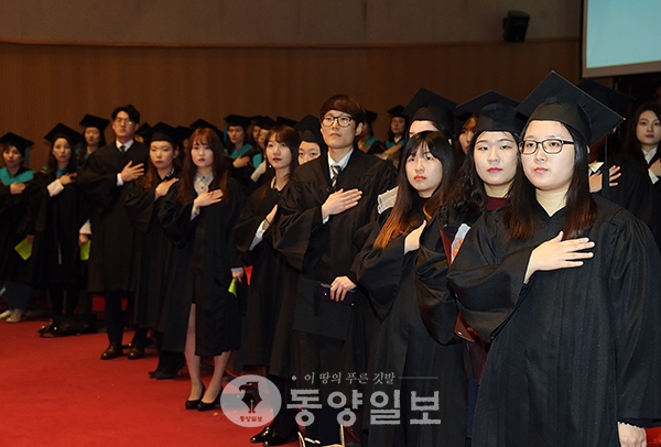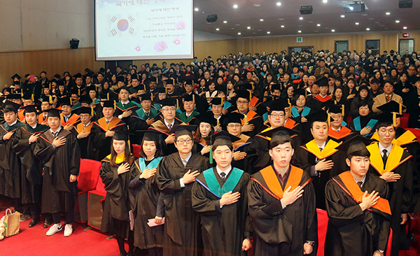 충북대학교가 22일 개신문화관에서 2016학년도 전기 학위수여식을 가졌다. 이날 학사 2707명, 석사 648명(일반대학원 419명, 전문대학원 91명, 특수대학원 138명), 박사 115명 등 3470명의 졸업생에게 학위를 수여했다. <사진·최지현>