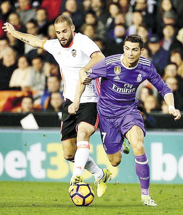 레알 마드리드는 23일(한국시간) 스페인 발렌시아의 에스타디오 데 메스타야에서 열린 2016-2017 프리메라리가 16라운드 원정경기에서 크리스티아누 호날두가 한 골을 넣었음에도 발렌시아에 1-2로 무릎을 꿇었다.