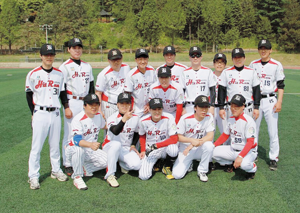 ‘즐겁게 던지고 치고 달리자’라는 뜻의 보은군청 야구 동호회 ‘Hit Run(히트 런)’이다.