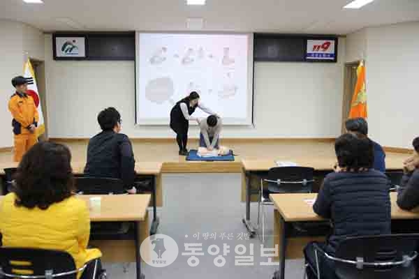 이날 교육은 △화재 시 119 신고요령 △화재의 예방과 이해 △소방시설의 종류와 사용방법 △화재 시 대처방법 및 피난방법 △심폐소생술 및 자동제세동기 사용법 △주택용 소방시설(소화기 및 감지기) 사용방법 및 관리요령 △기타 소방안전관련 질의·응답 등으로 진행됐다.