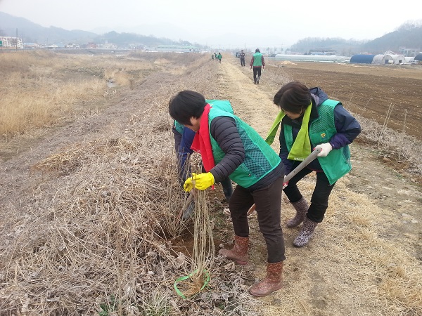 충주시 엄정면 새마을지도자협의회(회장 김문영·김도화) 회원들은 27일 엄정면 관문인 동충주농협 경제사업장 인근 도로변 600m 구간에 무궁화를 식재한 뒤 환경정화활동을 펼쳐 미담이 되고 있다.
