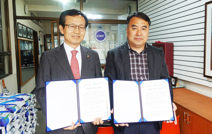 충북개발공사 계용준(왼쪽) 사장은 5일 청주 빈첸시오의 집 무료급식소와 시각장애인 거주시설인 광화원을 잇달아 방문해 자원봉사활동 협약을 체결했다.