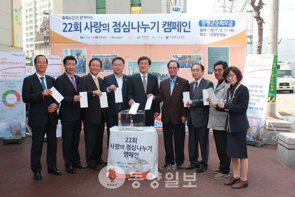 (증평=한종수 동양일보 기자)벚꽃이 만개한 11일 오후 2시 증평군청 민원실 광장에서 ‘22회 사랑의 점심나누기 순회 모금 캠페인’ 행사가 열렸다.