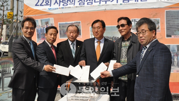 나용찬 군수는 이날 “군수 취임 첫 행사로 나눔의 행사를 참여하게 돼 기쁘게 생각한다”며 “나눔의 행사가 삶의 활력소가 아닌가 생각하며 오늘 행사를 하는 사람들의 아름다운 손길과 위대함에 찬사를 보낸다”고 말했다.