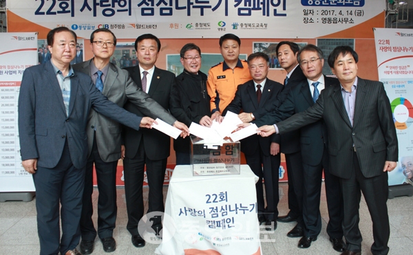 (영동=동양일보 임재업 기자)영동지역 사랑의 점심나누기 모금 행사가 지난 14일 오후 2시 영동읍 사무소에서 열렸다.