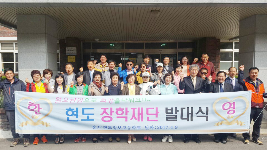 지난 9일 발대식을 갖고 18일 이사장에 채정난, 회장 김혜숙, 사무국장 김지연, 총무 이주실, 감사 박숙이, 권영진씨 등 임원진을 구성한 현도장학회는 앞으로 월 5000원의 후원금을 받아 학업환경이 힘든 학생들과 학업우수 학생들에 대한 장학사업을 펼쳐 나가게 된다.