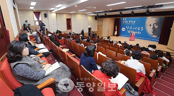동양일보 문화기획단이 주최하고 전국시낭송경연대회 조직위원회가 주관하는 15회 전국시낭송경연대회 예선이 지난 22일 진천 조명희문학관에서 열렸다. <사진·최지현> 동양일보TV 최지현 기자 cjh8921@dynews.co.kr 다른기사 보기 저작권자 © 동양일보 무단전재 및 재배포 금지 당신만 안 본 뉴스 한전 345KV 신평창~신원주 송전선로 건설사업, 제천·영월 결사반대 오송역세권 개발 다시 흔들리나…경찰, 오송역세권 조합장 배임 의혹 수사 홈플러스 동청주점 내년 1월 10일 폐점 확정...이젠 장보러 어디로? 충청내륙고속화도로 15년 만 완전 개통 대전 한화생명볼파크 전광판에 뜬 강백호 ‘웰컴’…한화 FA 계약 임박 제천 출신 최성진 중장 탄생, 7군단장 보임 충북도, 서울대병원 오송 유치 본격화 한전 345KV 신평창~신원주 송전선로 건설사업, 제천·영월 결사반대 댓글삭제 삭제한 댓글은 다시 복구할 수 없습니다. 그래도 삭제하시겠습니까? 비밀번호 닫기 기사 댓글 0 댓글 접기 댓글입력 권한이 없습니다. 댓글 내용입력 비회원 로그인 이름 비밀번호 댓글 내용입력 댓글쓰기 계정을 선택하시면 로그인·계정인증을 통해 댓글을 남기실 수 있습니다. 회원 로그인 이름 비밀번호 자동등록방지 로그인 옵션 창닫기 인기기사 한전 345KV 신평창~신원주 송전선로 건설사업, 제천·영월 결사반대 오송역세권 개발 다시 흔들리나…경찰, 오송역세권 조합장 배임 의혹 수사 홈플러스 동청주점 내년 1월 10일 폐점 확정...이젠 장보러 어디로? 충청내륙고속화도로 15년 만 완전 개통 대전 한화생명볼파크 전광판에 뜬 강백호 ‘웰컴’…한화 FA 계약 임박 제천 출신 최성진 중장 탄생, 7군단장 보임