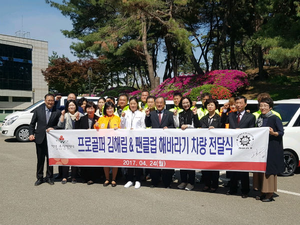 1억1200만원 상당의 승용차는 지난해 5월 한국여자 프로골프투어 교촌 허니 레이디스 오픈에서 받은 우승 상금과 김해림이 버디를 기록할 때마다 해바라기 회원들이 1000원씩 모은 ‘사랑의 버디 기금’으로 마련했다.