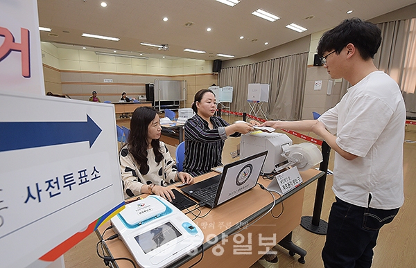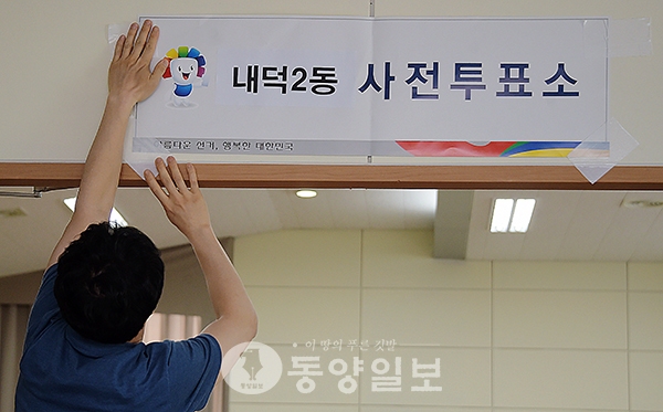 19대 대통령 선거 사전투표를 하루 앞둔 3일 청주시 청원구 내덕2동 행정복지센터 3층에 마련된 사전투표소에서 직원들이 설치·점검을 하고 있다. 이번 19대 대통령 사전투표는 4일부터 5일까지 오전 6시부터 오후 6시까지 실시한다. <사진·최지현> 19대 대통령 선거 사전투표를 하루 앞둔 3일 청주시 청원구 내덕2동 행정복지센터 3층에 마련된 사전투표소에서 직원들이 설치·점검을 하고 있다. <사진·최지현> 19대 대통령 선거 사전투표를 하루 앞둔 3일 청주시 청원구 내덕2동 행정복지센터 3층에 마련된 사전투표소에서 직원들이 설치·점검을 하고 있다. <사진·최지현> 19대 대통령 선거 사전투표를 하루 앞둔 3일 청주시 청원구 내덕2동 행정복지센터 3층에 마련된 사전투표소에서 직원들이 사전투표 최종 모의시험을 하고 있다. 이번 19대 대통령 사전투표는 4일부터 5일까지 오전 6시부터 오후 6시까지 실시한다. <사진·최지현>