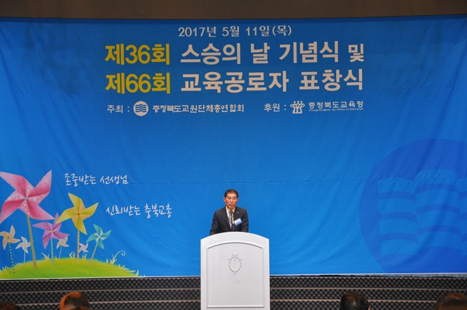 (동양일보 조아라 기자) 충북교원단체총연합회(회장 김진균)는 11일 오후 청주 S컨벤션에서 36회 스승의 날 기념식 및 66회 교육공로자 표창식을 개최했다.