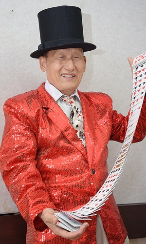 그는 고령에도 불구하고 30kg에 달하는 마술 도구가 든 가방을 들고 버스로 전국 각지를 누비며 거뜬하게 한, 두 시간의 공연을 소화해 낸다. 비결은 꾸준한 운동. 매일 두 시간씩 아령과 팔 굽혀 펴기 등을 하며 체력을 유지한다. 지난해 10월에는 서울 중구 구민회관에서 열린 ‘전국 실버코리아 몸짱 보디빌딩 선발대회’에 출전하기까지 했다. 아쉽게 10위권에 그쳤지만 10년 안에 우승을 노려볼 작정이다.