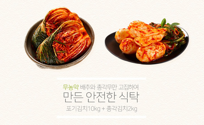 이번에 판매될 친환경 김치SET는 100% 국내산 무농약 재료를 사용한 ‘무(無)방부제, 無색소, 無화학조미료의 안전한 웰빙 김치’로 ‘포기김치 10kg + 총각김치 2kg’으로 구성돼 4만3900원에 판매된다.