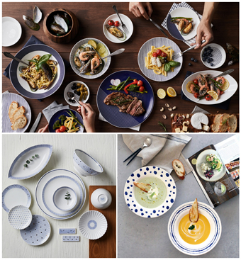 ‘더셰프(The Chef) 프리미엄 컬렉션 인디고’는 깊은 바다색을 닮은 컬러로 채도와 명도가 낮아 음식을 더욱 돋보이게 만들어 준다. 시에니 잉키(Sieni Inkie)’는 바다에서 영감을 받은 회화적인 디자인이 특징으로 트렌디한 테이블 세팅을 연출해 준다. 스폰지로 찍어 물결의 깊이를 표현한 블루 패턴이 하얀색 도자기와 대비돼 더욱 산뜻하면서도 깨끗한 이미지를 보여준다. 1~2인 소형 가구를 위해 꼭 필요한 식기만을 엄선해 구성된 10pcs 차림세트로, 빅사이즈 오발볼과 파스타볼이 구성에 포함돼 한식은 물론 양식 상차림 모두 활용 가능하다.