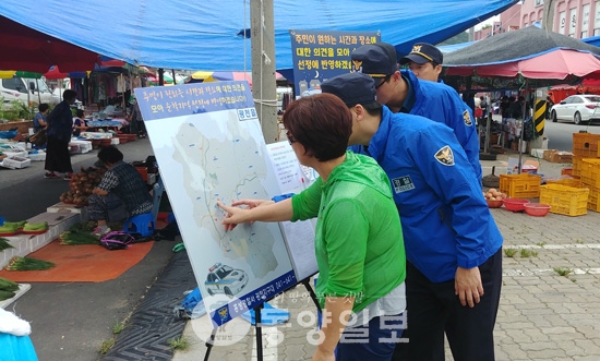 이 제도를 시행한 이후 경찰서 생활안전과에서는 제도 취지를 설명하는 포스터도 붙이고, 전광판, 경찰서 홈페이지 등을 통해 알렸으며 11개 읍․면 주민자치센터, 대형마트 등에 지도를 설치해 순찰 요청장소에 스티커를 붙이는 방식으로 의견을 모으며 직접 마을회관을 방문하거나 SNS를 통해서주민 의견을 들었다.
