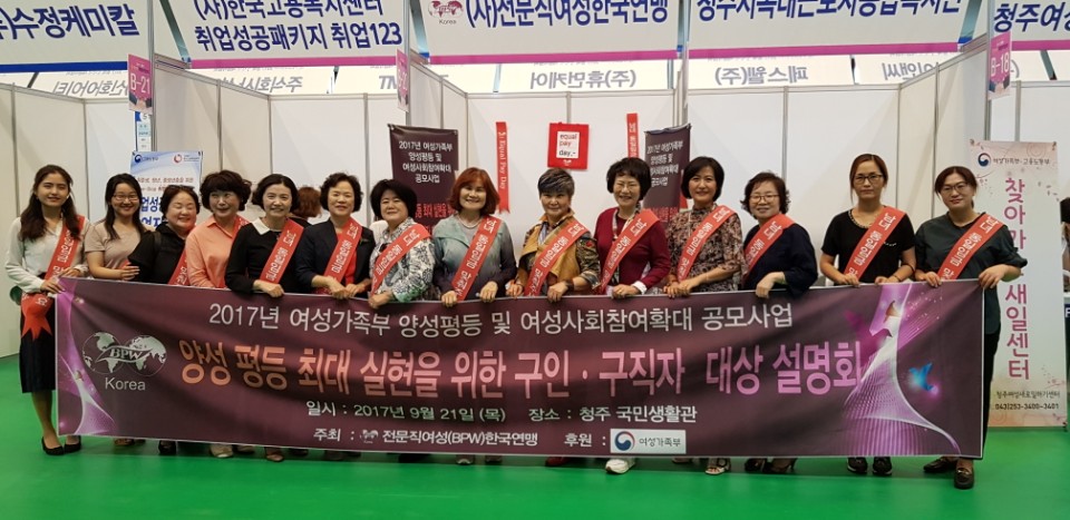BPW는 21일 청주국민생활관에서 열리는 2017 충북중장년 채용박람회에서 ‘양성평등 최대 실현을 위한 구인 구직자 대상 동일임금 설명회’를 가졌다.